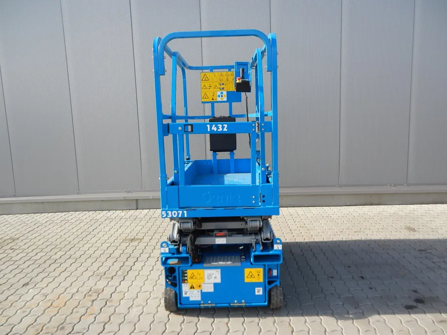 De Genie GS1432M een zeer compacte en wendbare schaarhoogwerker. Door laag eigen gewicht ook mee te nemen in grote bus.
