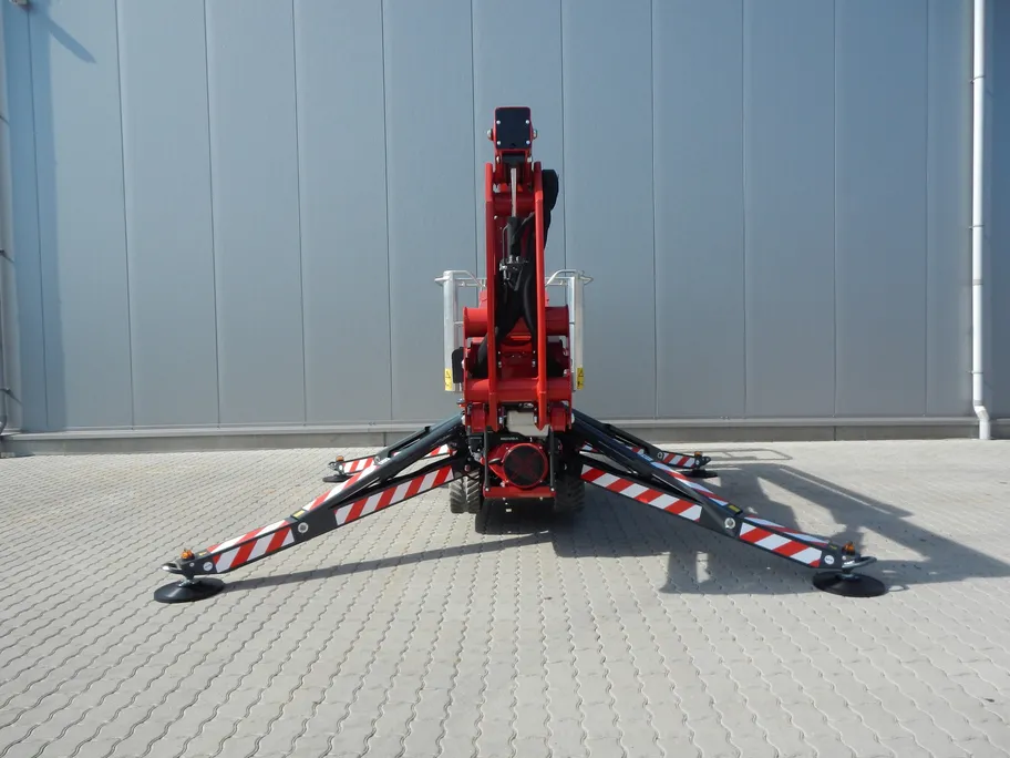 De spinrupshoogwerker is ideaal voor o.a. de schilder en boomverzorger. Door de afneembare korf en verstelbaar rupsonderstel is hij slechts 80 cm breed.