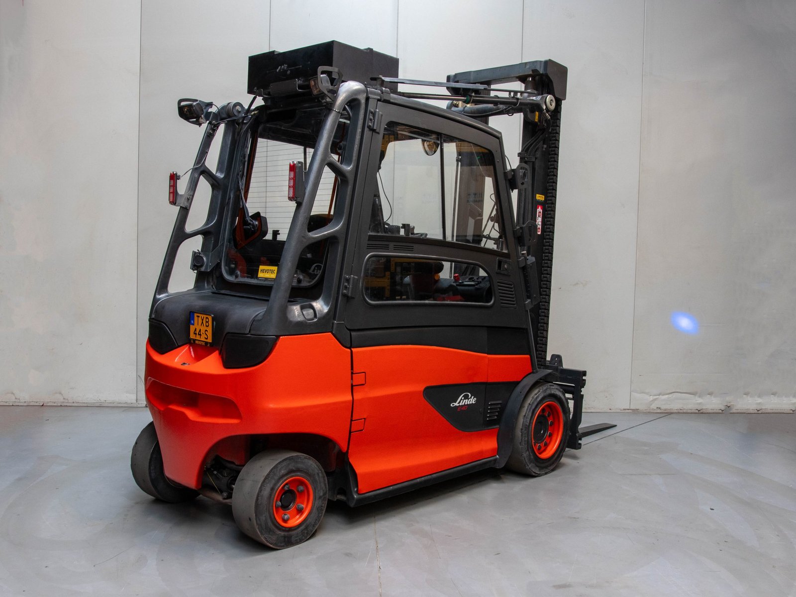 De heftruck is voorzien van verlichting en volrubber banden voor stabiel en onderhoudsarm gebruik. Bij Hevotec wordt de machine volledig technisch en optisch nagezien, gekeurd en bedrijfsklaar geleverd.