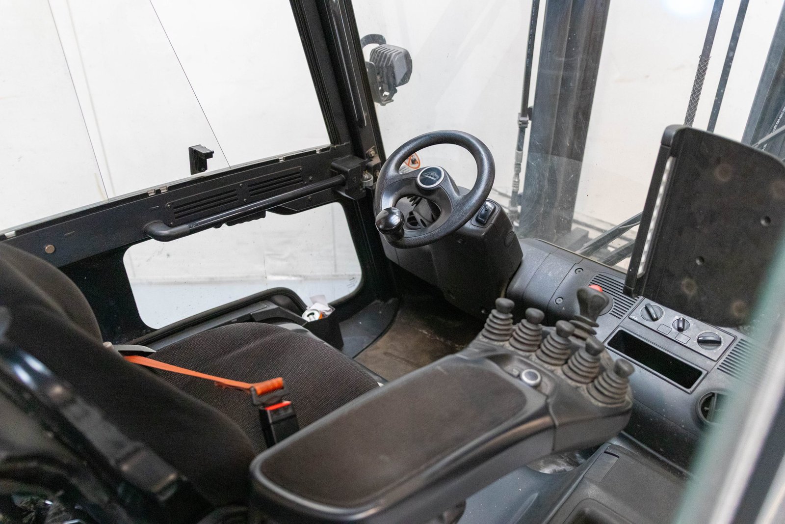 Deze Linde e50 is met een hefcapaciteit van 5000kg een echte een echte krachtpatser. De heftruck is voorzien van een standaard mast met sideshift. Hiermee is een hefhoogte van 4,1 meter te bereiken. De heftruck is voorzien van alle gemakken. Denk hierbij aan een dichte cabine inclusief verwarming. Ook is de machine van blue spot lampen voorzien, hiermee creëert u een veilige werkomgeving.
