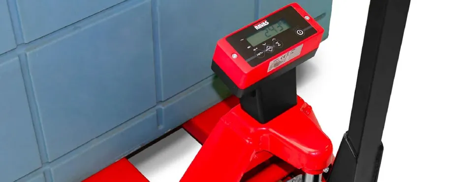 De RAVAS-1100 wegende handpalletwagen controleert het gewicht bij de ontvangst van goederen of bij het invullen van de transportdocumenten. Een zeer nauwkeurig model met een schaaldeel van 1 kg en max. tolerantie van slechts 0,1% van opgenomen last.